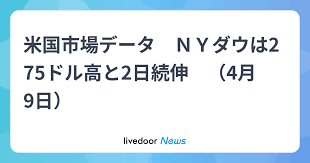 米国市場データ NYダウは275ドル高と2日続伸 (4月9日)